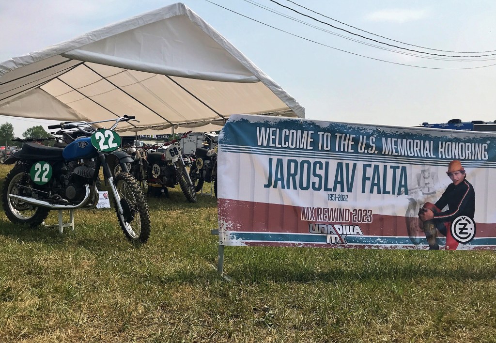 “It was 45 years ago next month that I met her father,” Jill Robinson said of Falta, who raced Unadilla in the 1970s and was honored with two CZ parade laps on Saturday and Sunday. Static displays of classic CZ twin pipers and Falta replicas helped put a human touch on vintage iron.