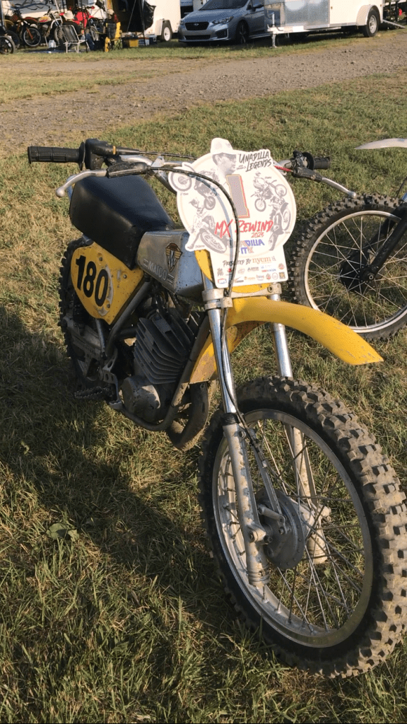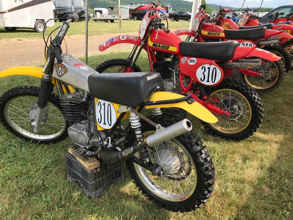 - A generally reliable 1974.5 Maico 250 that wouldn’t fire on the line and needed a bump from a gate worker to get going… one whole lap into the first moto. Going 2-1 for a trophy here was a saving grace and sanity check.