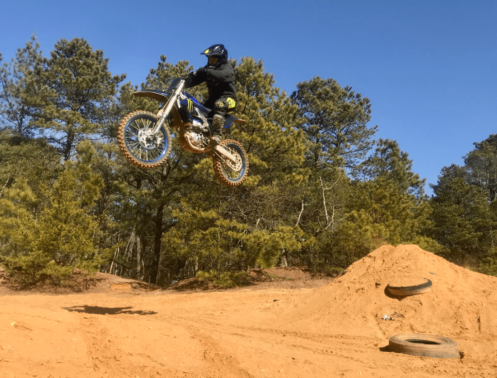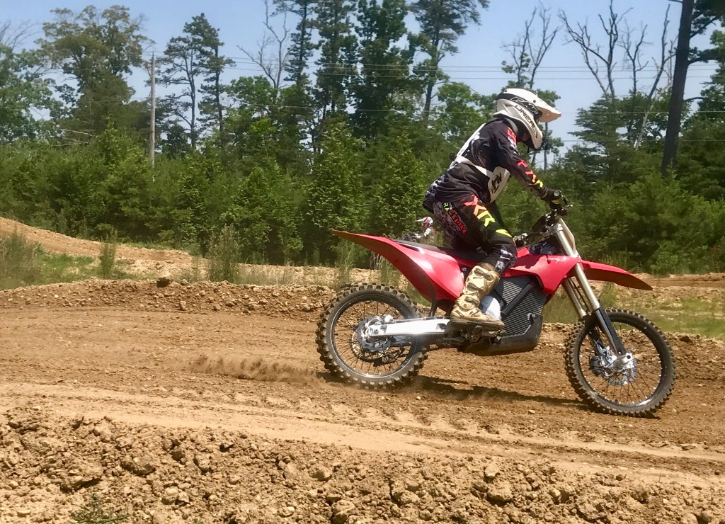 Now let’s trade that silent and serene hallowed ground for pretty much pure hell. It’s 100 degrees and hasn’t rained in weeks. We’re in another de-forested shade-free site in some other forgotten corner of New Jersey and the motocross riders in full-length riding kits are whipping up cyclones of sand that never land. There’s no need for hyperbole at this point, but one fire-red Jersey Devil is commanding my attention inside Dante’s eight circle of the inferno. It’s a Stark Varg owned by Erm Centofanti, a Monmouth County, New Jersey resident who has come down to the Field of Dreams MX park for a race weekend. “This is the best motorcycle I’ve ever owned,” the lifelong rider and 50-plus racer said between sessions in a highly-desirable shaded corner. “It can be a 125, a 250, a 450 or a 500,” he added of the Varg’s on-the-fly mode adjustments.
