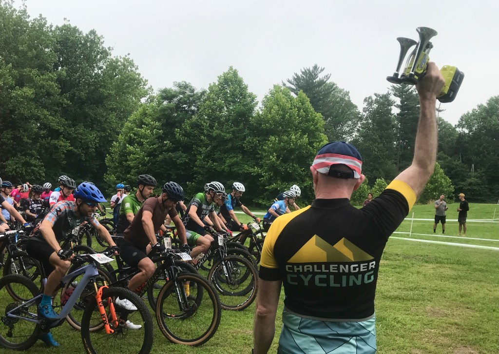 “Class 1” in electric bicycle terms translates to no hand twist throttle and a motor that cuts out like a brick at 20mph; the full fat of flinging a 50-pound bike is suddenly felt with boat anchor force. Hybrid touring-oriented class 2 options have a throttle (but also top out at 20mph) while class 3 doesn’t have a throttle, but are built to hit 28mph through pedal-assistance. Nine well-intention people registered for the strictly class 1 pedal-assist Challenger race. Doesn’t sound like a lot on its face, but that total is, give or take one or two, about the same count of experts and pros in each of the morning’s age classes.