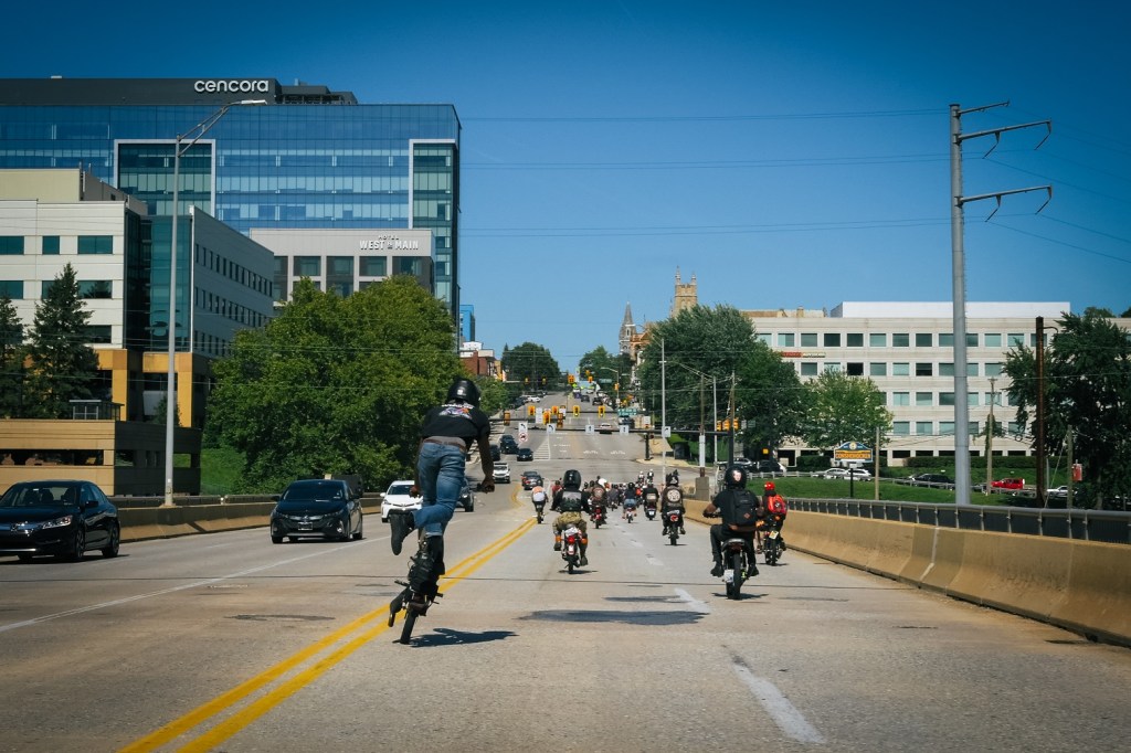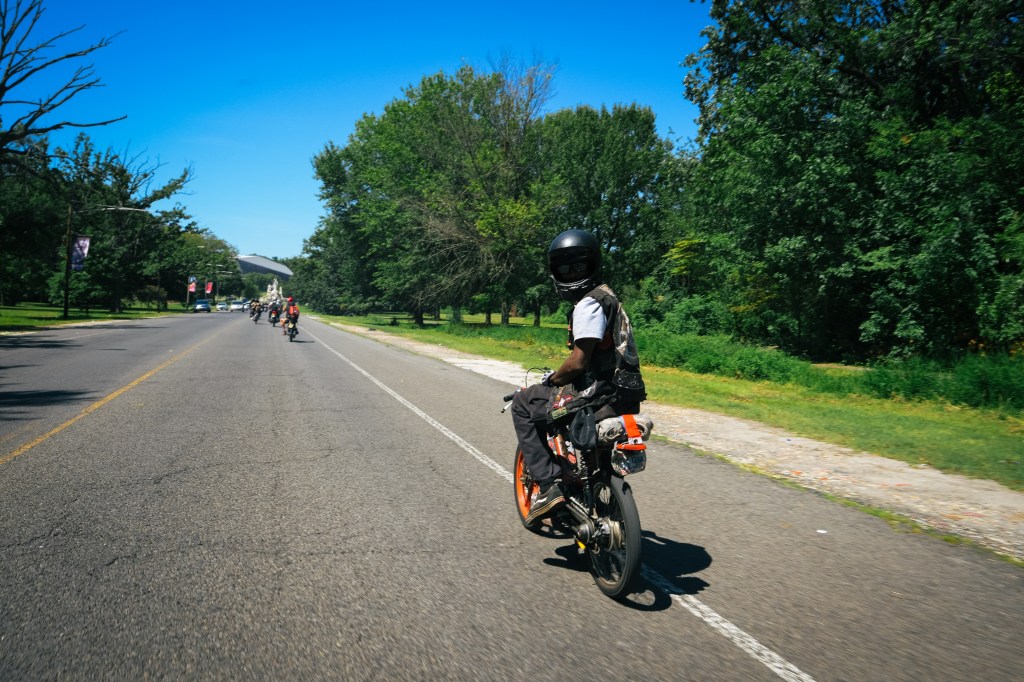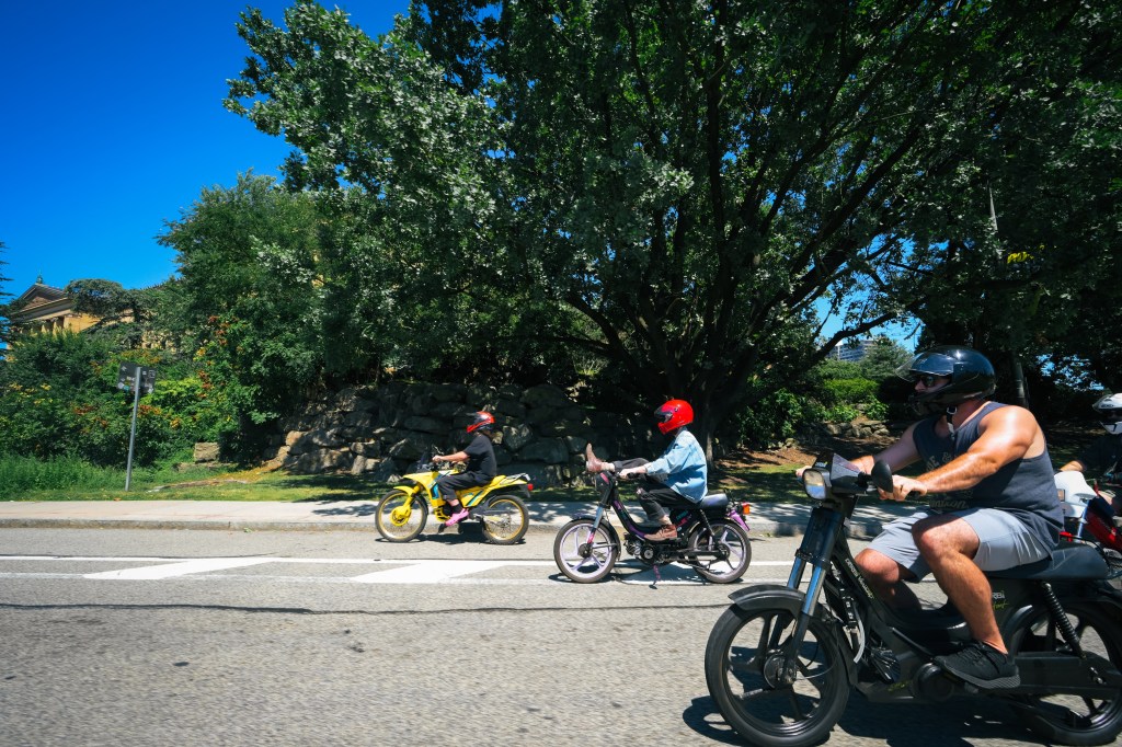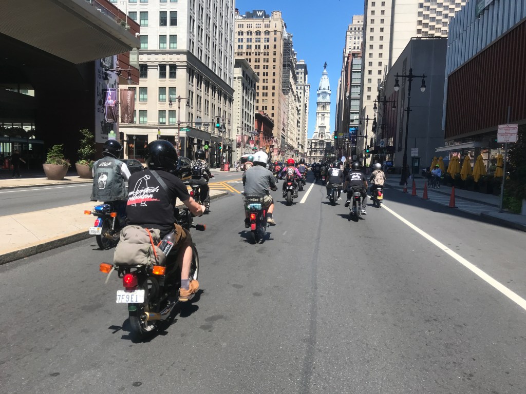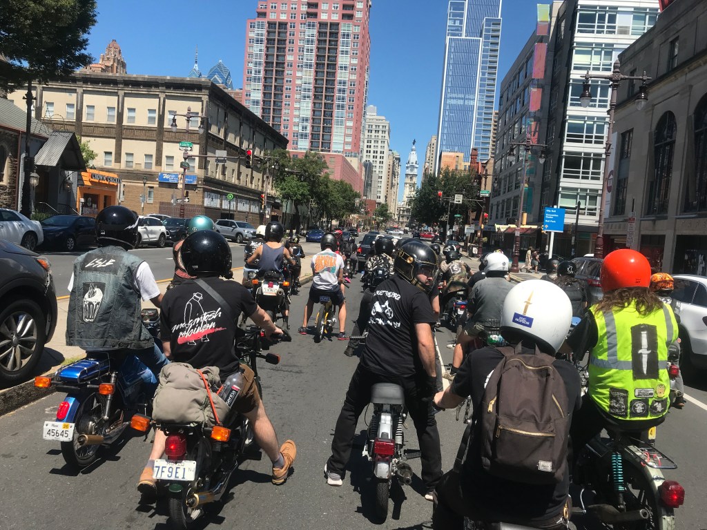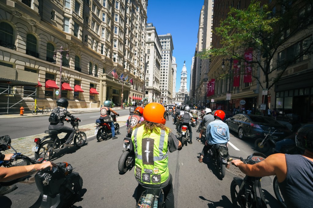 As our 70-deep ride pulled away from red lights up Broad Street, collective power bands of these tiny terrors reverberating off the cavernous masonry walls, the reactions from onlookers was a mixed bag. “They are either so stoked or so bummed,” Romano laughed after the ride. Indeed, many were pulling out their phones to record this squad of angry hornets leaving a blue-tinted smog in its wake. Or, they were covering their ears and clutching nearby children in fear of them one day growing up and living a little.