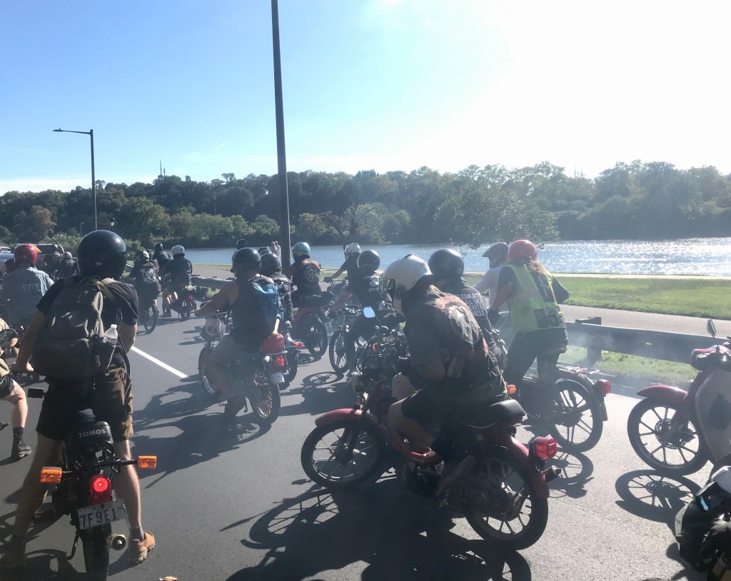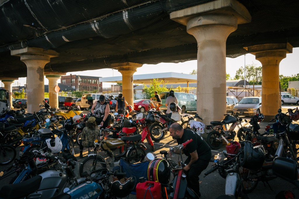 “This is the best group of people I’ve ever met,” explained Alex “Uncle Al” Test, a longtime LGN-er. “We’re all each other’s emergency contacts. We’re all so different, but strong together as a legion. That’s what it’s all about.” For some backstory on the club, watch this 8-minute documentary. For a better perspective on what a five-hour group ride on 35-mile-per-hour mopeds is like, we’re going to try with words – but it’s something you just need to do to know.