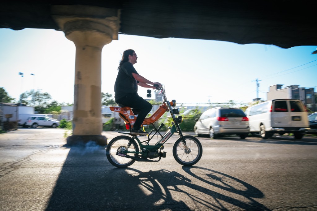 These little exhibits are exemplary of how people get into this thing. It’s not necessarily by choice, but it is that desire to ride something loud and be with the skateboarders, punks and tattoo artists whom you already identify with. Such was the case for Joe Romano, 36, who took a 13-hour drive up from Nashville. He got his first moped around 19 or 20, soon after upgrading to a Puch Maxi. It was the skateboarding community that eventually led him to mopeds, following a tried-and-true path for counter culturists.