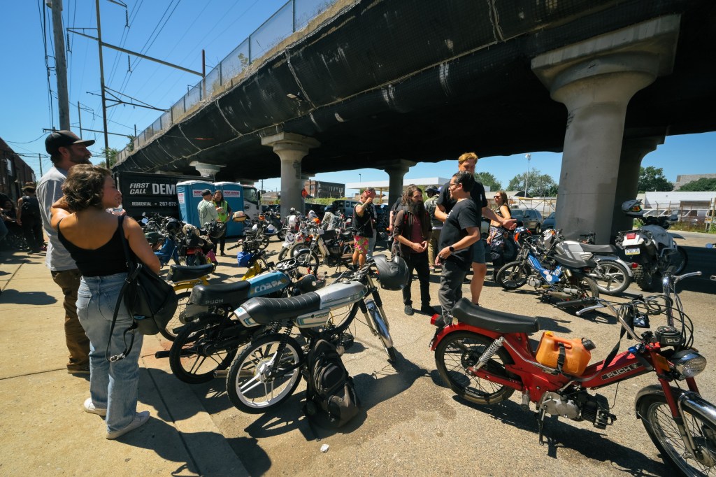 Navigating a labyrinth urban layout, the ever-scheming Bueller takes this 1961 classic and two close friends on what was likely the most memorable day of their formative years. My own hopes were riding similarly high as I crammed two top tank 1996 Tomos Targas, a ‘74 Suzuki GT185, three helmets, two spark plugs, a socket, my better half along with the partner-in-crime cousin into the van and aimed it at South Philly. The destination? LGN moped club shop and headquarters for their ninth rally, ride and all-around fun-fest. The itinerary after arrival? More or less a mystery.